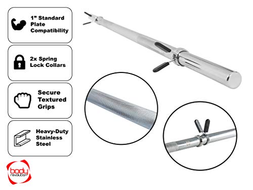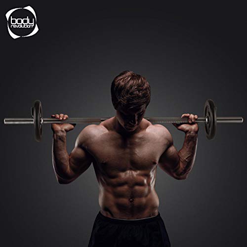 Body Revolution Barbell Bar – 1.4m Weight Lifting Bar for 1 Inch Standard Weights Plates – Barbell for Bench Press…