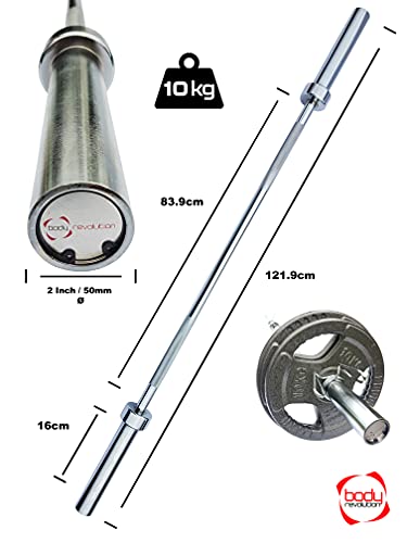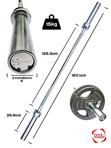 Body Revolution Olympic Barbell Bar – Olympic Weight Lifting Bar for 2 Inch Weights Plates – Commercial Barbell for…