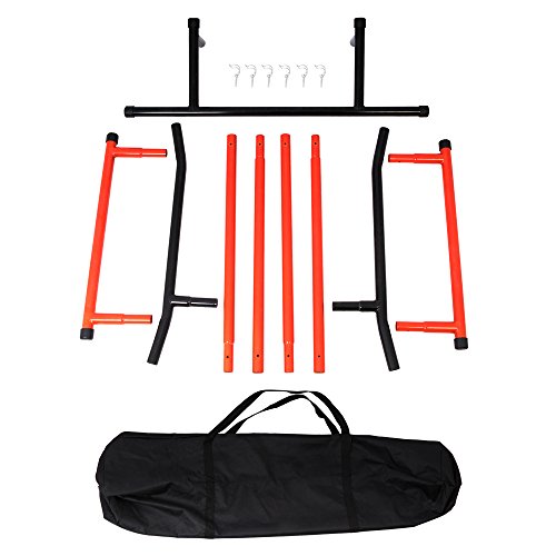 💪 DIMENSIONS – Base = 117cm x 113cm, Prolonged Top = 2m, Compact Top = 1.3m, Interior Bar Width = 60cm, you’ll simply collect and dismantle the purple & black freestanding dip and pull up station in not up to 2 mins