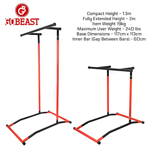 GoBeast Pull Up Bar Free Standing Dip Station, Portable Power Tower Home Gym Equipment, Storage Bag And Downloadable…