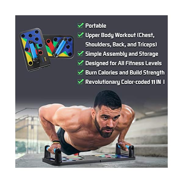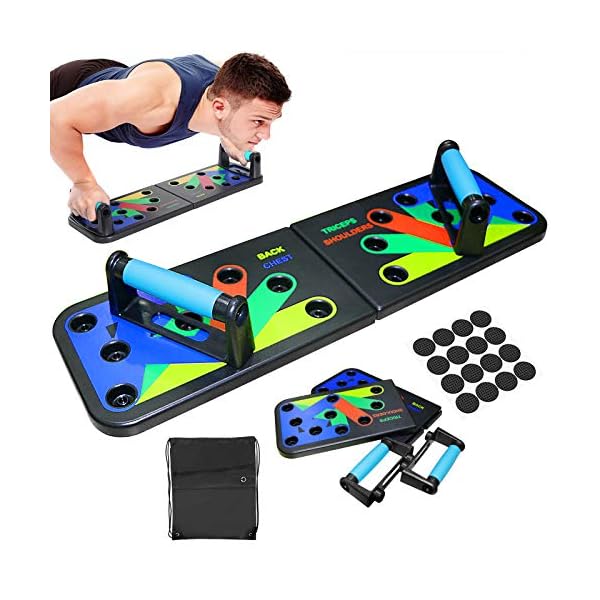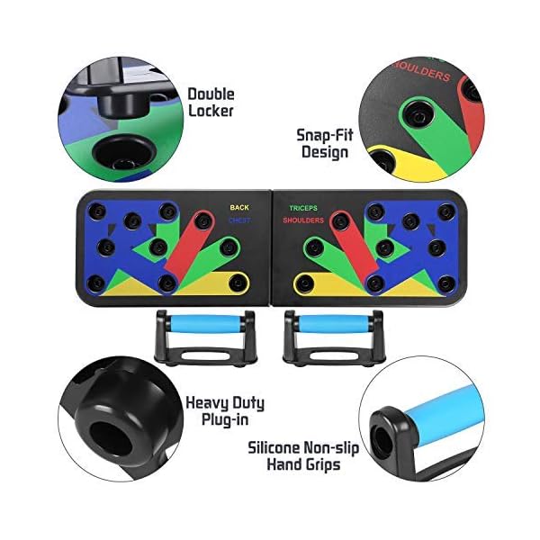 💪【12-in-1 Push Up Board】Different color-coded push-up board targets specifics muscles worked .in an effort to get more targeted training for specifics muscles (Red-shoulders, Yellow-back, Green-triceps,Blue-Chest).