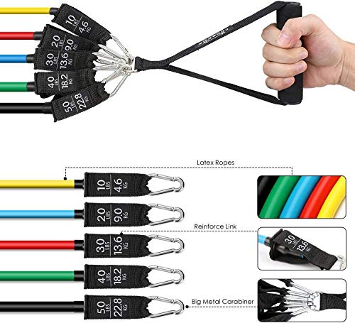 【five Colours Adjustable Resistance Bands】Crimson 50 lbs, Black 40 lbs, Inexperienced 30 lbs, Blue 20 lbs, Yellow 10 lbs. All Exercise bands are can be utilized by myself stacked or in any aggregate to a most an identical of 150 lbs.