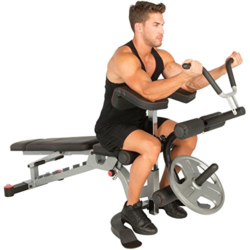 Included Olympic preacher curl and leg developer attachment for building your arm, thigh and leg muscles