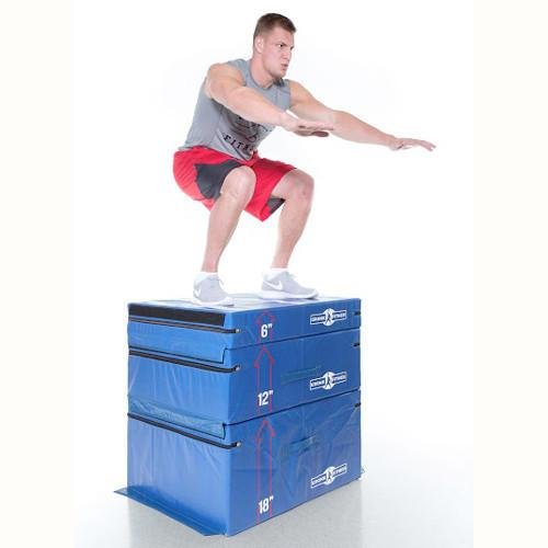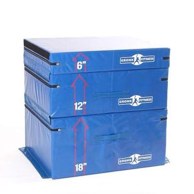 BECOME MORE EXPLOSIVE WITH THE GRONK FITNESS SOFT IMPACT PLYO BOXES. PLYO BOXES ARE GREAT FOR IMPROVING POWERFUL MOVEMENTS. GREAT FOR ATHLETES OF ALL AGES, CROSS CIRCUIT TRAINING AND INDIVIDUALS LOOKING TO REACH FITNESS GOALS. THESE FOAM PLYO BOXES ARE MADE FROM HIGH DENSITY FOAM AND COVERED WITH 18OZ.VINYL. THE BOTTOMS AND TOPS ARE 30 OZ. NON-SKID VINYL. EACH BOX HAS A HANDLE FOR EASY REPOSITIONING AND VELCRO STRIPS FOR STABILITY WHEN STACKING. STACK ANY COMBINATION TOGETHER FOR DESIRED HEIGHT.