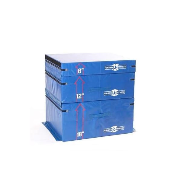 BECOME MORE EXPLOSIVE WITH THE GRONK FITNESS SOFT IMPACT PLYO BOXES. PLYO BOXES ARE GREAT FOR IMPROVING POWERFUL MOVEMENTS. GREAT FOR ATHLETES OF ALL AGES, CROSS CIRCUIT TRAINING AND INDIVIDUALS LOOKING TO REACH FITNESS GOALS. THESE FOAM PLYO BOXES ARE MADE FROM HIGH DENSITY FOAM AND COVERED WITH 18OZ.VINYL. THE BOTTOMS AND TOPS ARE 30 OZ. NON-SKID VINYL. EACH BOX HAS A HANDLE FOR EASY REPOSITIONING AND VELCRO STRIPS FOR STABILITY WHEN STACKING. STACK ANY COMBINATION TOGETHER FOR DESIRED HEIGHT.