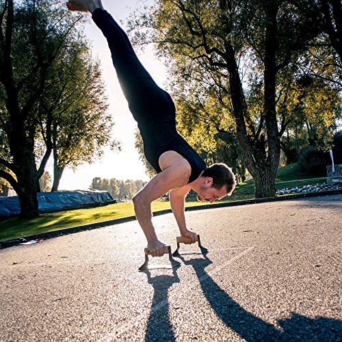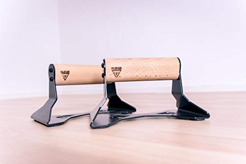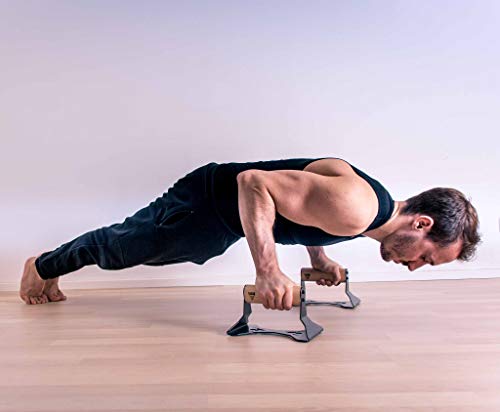 PULLUP & DIP Wooden Push Up Bars With Ergonomical Handle And Heavy-Duty Steel – Anti-Slip Push-Up Handles, Handstand…